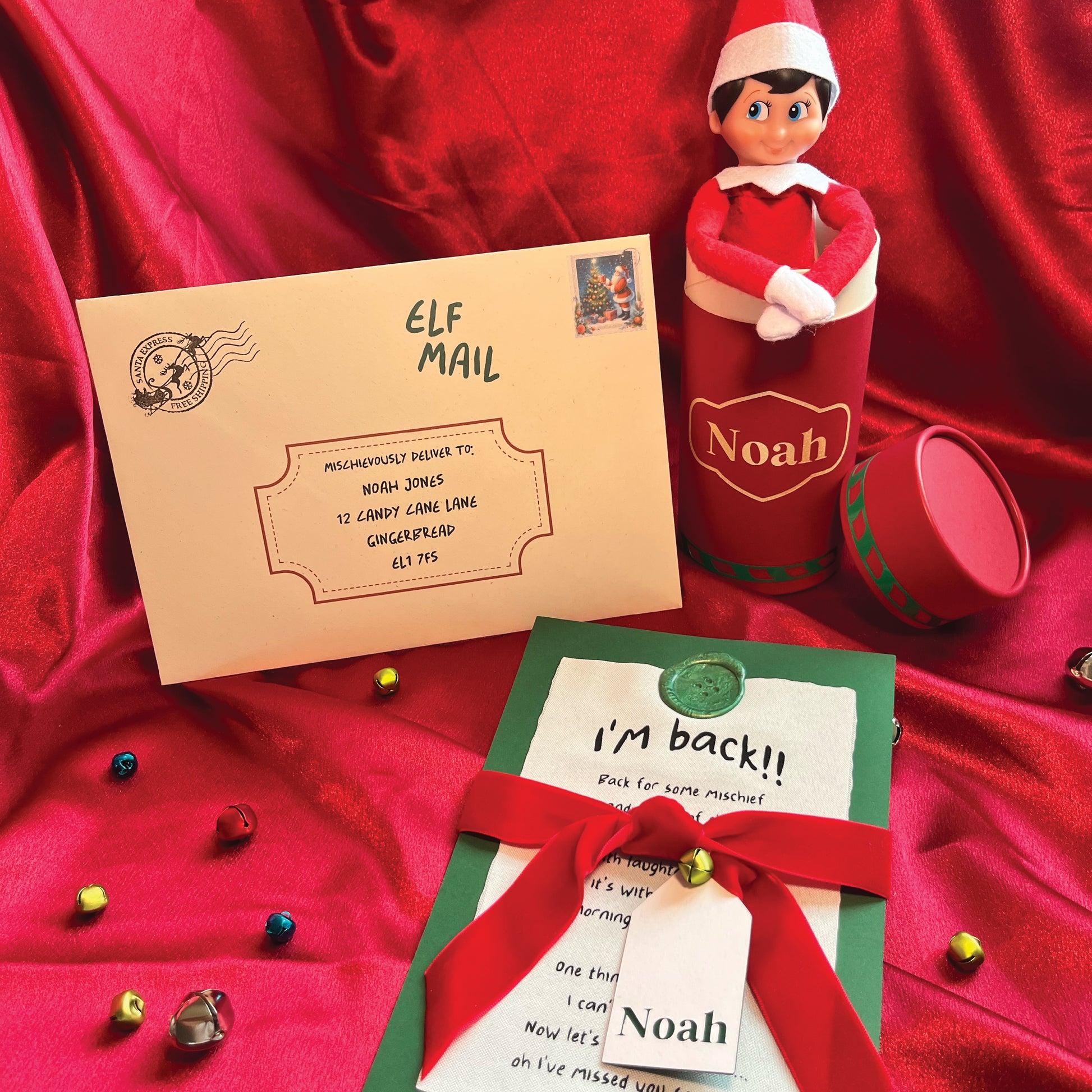 - Complete your letter with a home for your little elf - his very own delivery box! Our personalised boxes are perfect to complete your mischievous delivery and are personalised to include your child(ren) name(s). Ensure the names to be added to the box(es) are noted in the 'Order Special Instructions'. E.g. box 1 - Noah.
