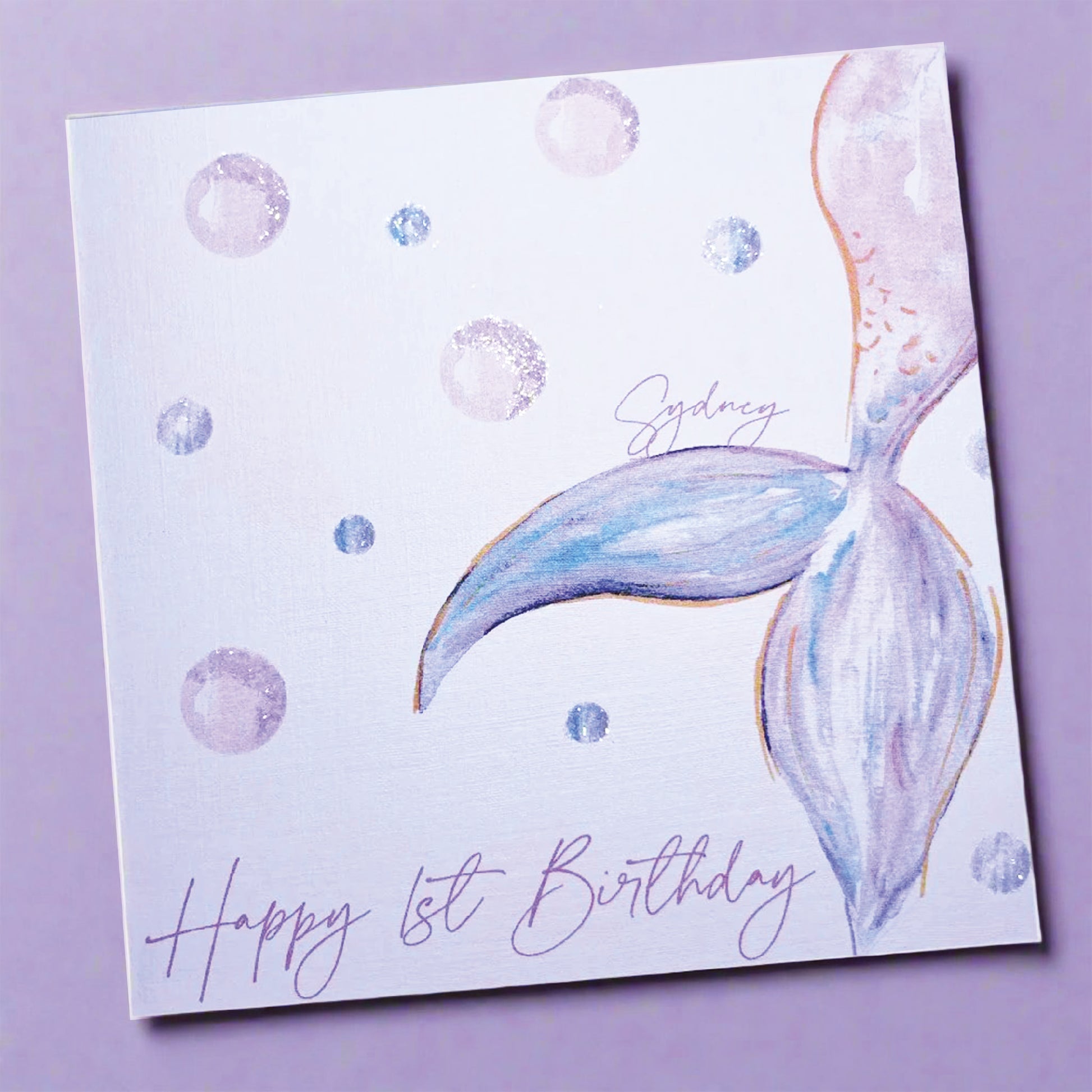 Celebrate their special day in a magical way with our Mermaid Birthday Card. This unique and playful card features our own beautiful watercolour mermaid tail and a touch of sparkle.