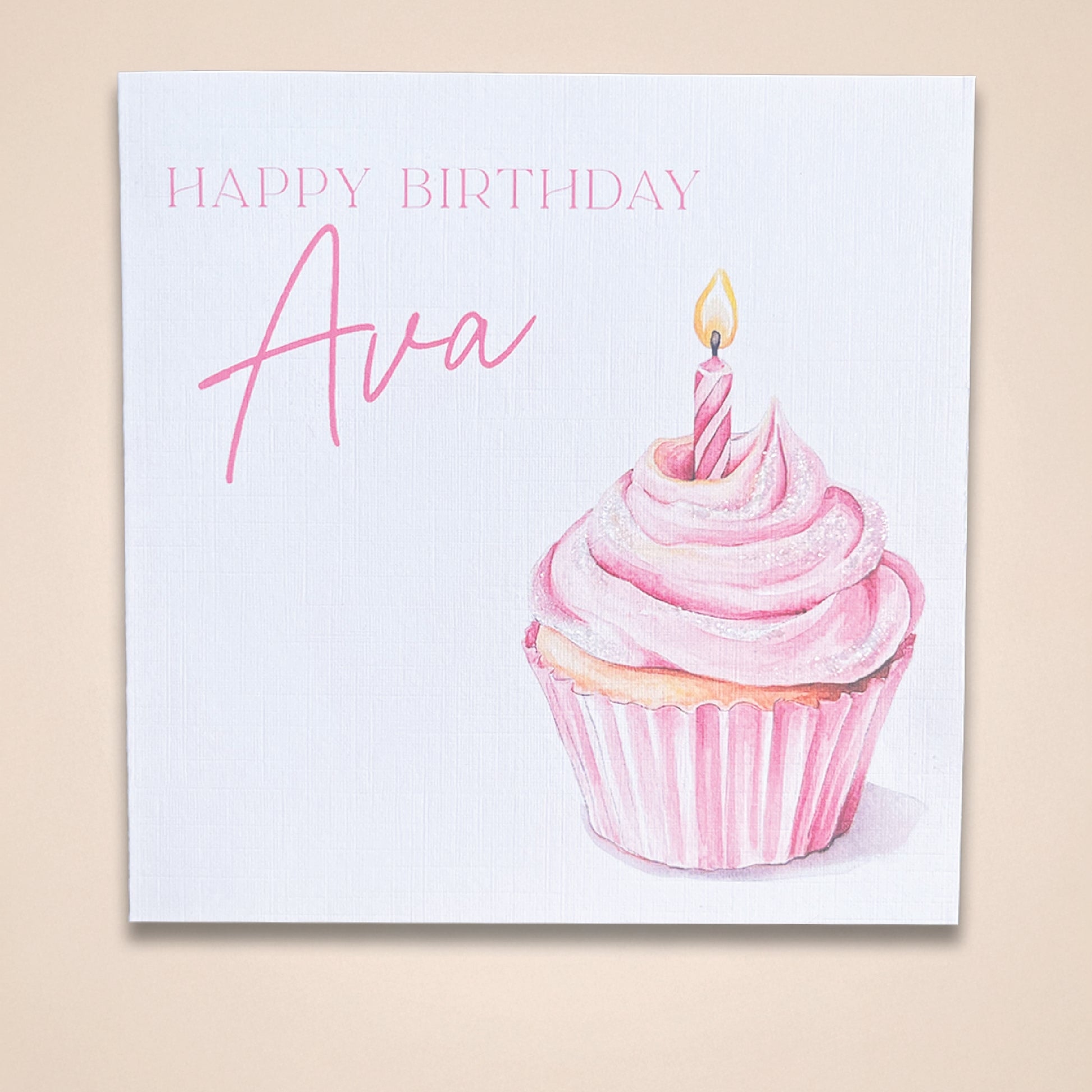 Share your birthday wishes with this beautiful card featuring pink cupcake watercolour design and of course some added sparkle.